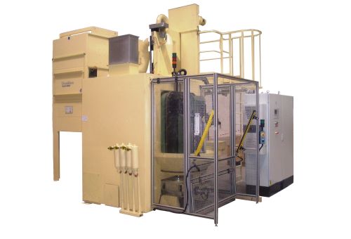 Wheelabrator provides highly precise satellite table machines which are specifically designed for use in the automotive and aerospace industries. These machines can be combined with robots for automatic loading and unloading, creating fully integrated manufacturing cells.